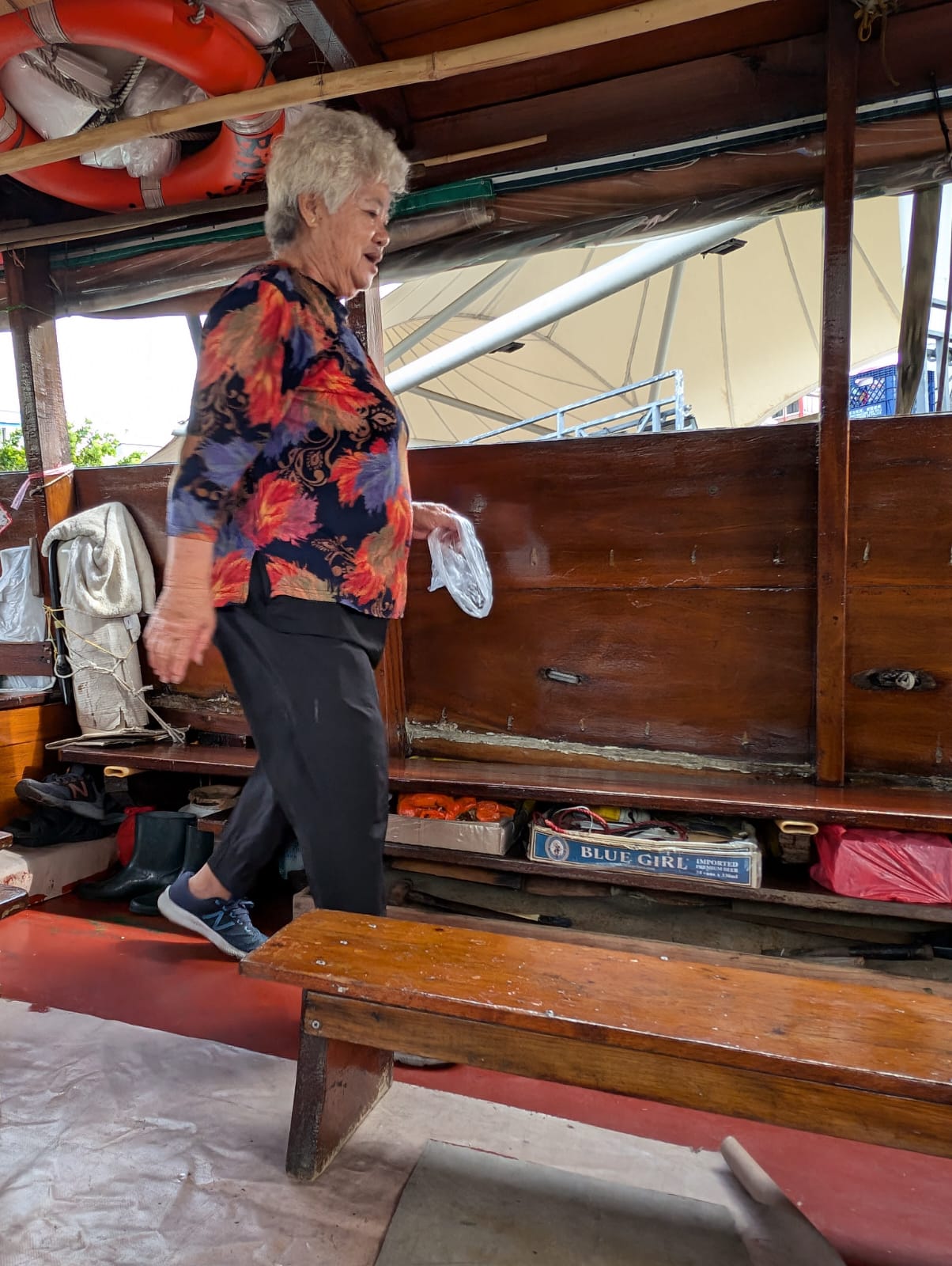 Je m’approche, et je repère la vieille la plus petite du groupe. Elle a l’avantage de l’expérience, mais je suis avantagé dans le sens de la hauteur. Les regards s’accrochent; je lui demande si elle peut nous contrebander vers l’île voisine. Elle se tourne pour jeter un coup d’œil au chauffeur de sampan. Lui tire sur sa cigarette comme sur un werthers original et hoche lentement la tête. Elle me dit que c’est bon, dans un cri à mi-chemin entre un vin chaud de Noël et le chien pris la patte dans un piège à collet. Moi, la fixant loin entre les deux yeux, je prends une grosse respiration de Jean Reno dans le grand bleu, et d’une voix solide comme la roche du cap d’Ailly, je lui dis que je vais manger d’abord. De un, j’ai faim, de deux, c’est une technique de négociation du GIGN que j’ai lu dans Picsou magazine. Tu prétends que tu es intéressé, puis tu vas manger du crabe. D’ailleurs dans le film, c’est lequel le grand bleu?