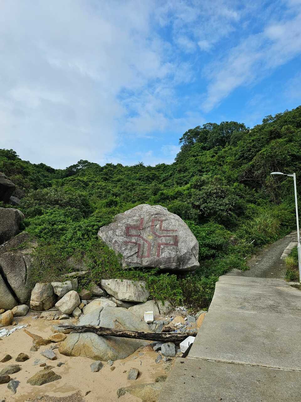 Le sampan arrive en vue d’un énorme rocher avec une croix gammée. C’est l’entrée du culte, on va faire des pieds-bouches contre des nazis, façon Indiana Jones, tant qu’il y a un chalice à la fin ça me va. Après avoir remis mes lunettes, c’est juste un gros symbole chrétien bizarre de type croix, sans grand intérêt, mais faut que tu suives, alors je mets de la tension dans l’histoire, comme il faut mettre du beurre dans les épinards, et des crocs de sucre sur la chouquette.