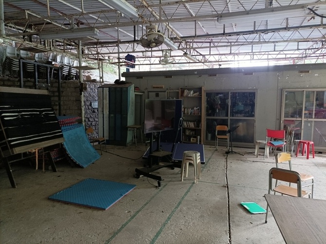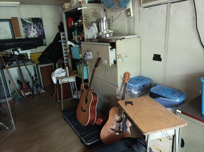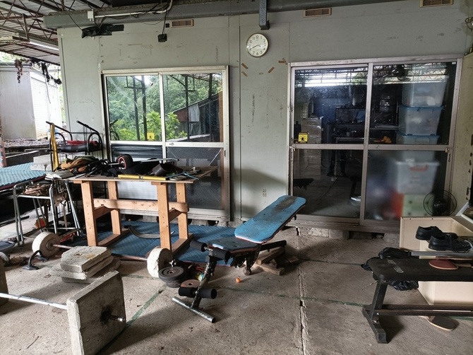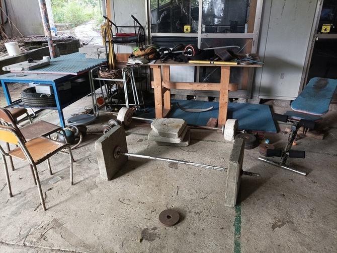 J’entre dans la jungle, mais je me méfie, il y a avait des enfants drogués avant, ils sont ptet encore là cachés à l’ombre des cocotiers. Ça me rappelle le Vietnam, je regarde là où je mets les deux pieds avant de marcher, et je chante pas de Claude François au Karaoké. J’avance dans des bâtiments désaffectés, c’est un vrai bordel, pas celui où tonton, il va le jeudi pendant sa pause dej, plutôt celui de ma chambre, avec des legos partout. Il y a de tout ici, des instruments qui font de la musique quand on tape ou on souffle, les haltères originales de Bill Kazmaier avec des poids en béton, plein de médailles comme ça tout le monde est gagnant, une cuisine gigantesque, des têtes à perruque pour donner des coups de ciseaux, des montagnes de PQ, des posters de Tom Cruise le meilleur, des photos sur les murs des petits junkos, un parc à huîtres, parce que y’a pas plus rédemption que d’adopter un mollusque, des frigos dehors, une Playstation 2 dans des cahutes construites en tôles ondulées, du matériel de Ping Pong, des falourdes de merde. Quelle bonne condition que celle de gosse toxico.