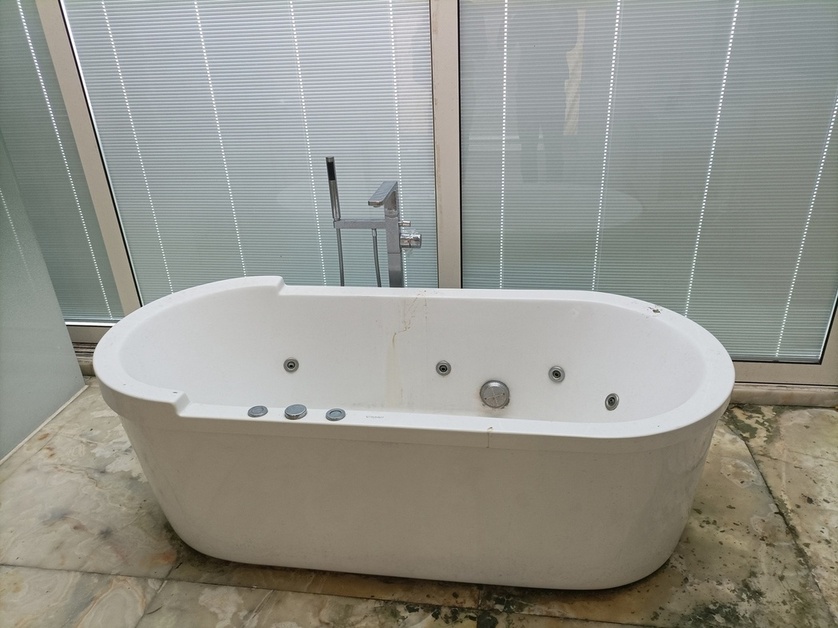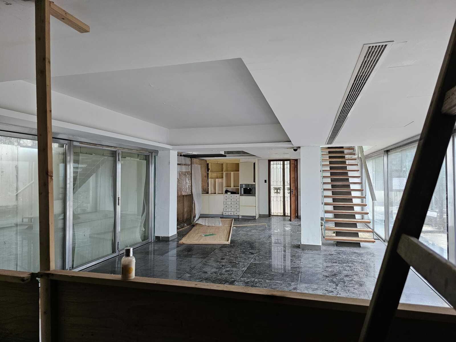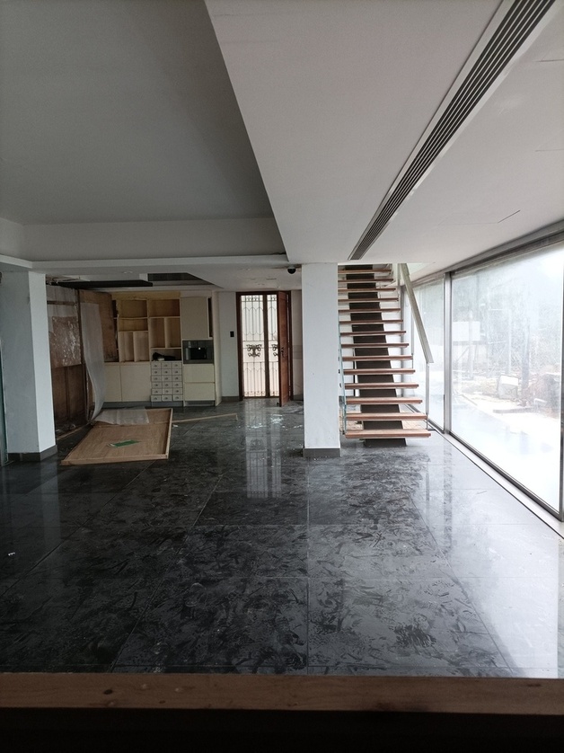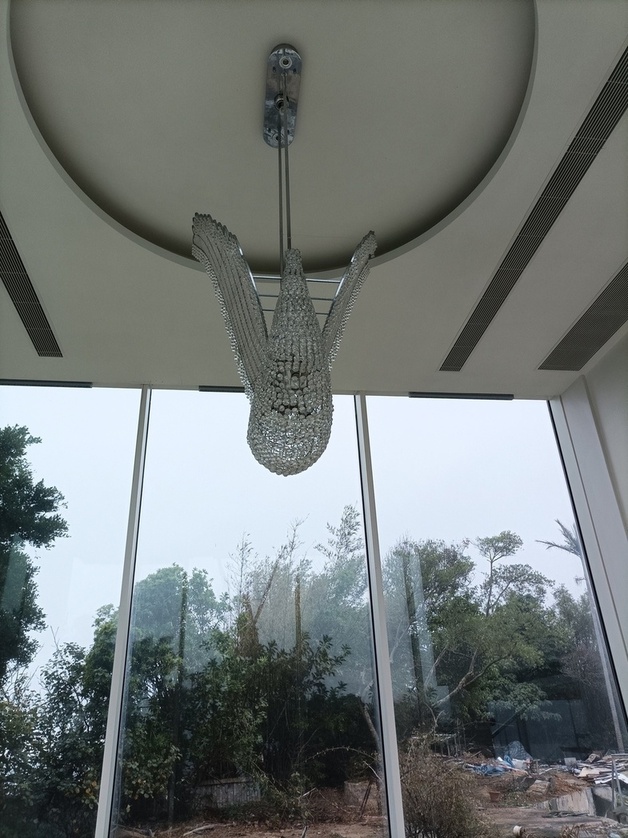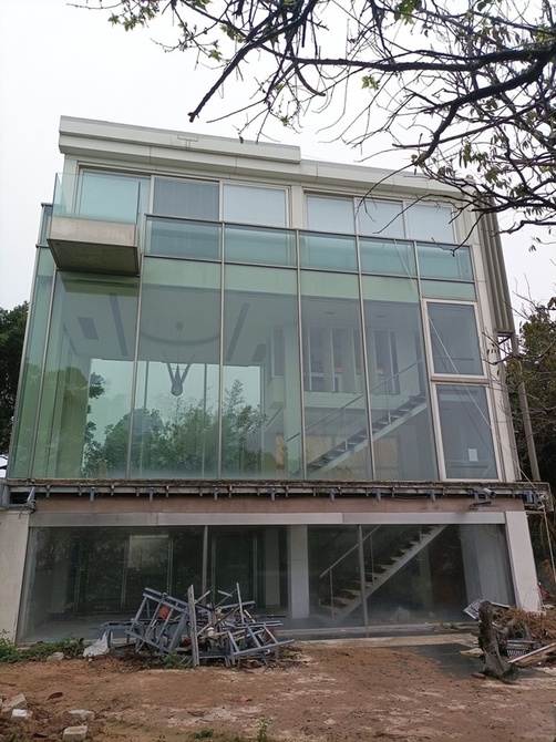 Du genre grandes fenêtres vue sur la mer et procès en cours. Petit esprit ravalement de façade façon burin et pointerolle par les zouaves du gouvernement. Un mur en brique pour dissimuler la chambre. Un jardin zen sous un escalier Hol en Bol. Des peintures de propagande comme si on était à Kaliningrad. Une piscine creusée à même la roche sédimentaire, à 40 centimètres de la mer, sans pour autant la toucher. Parce que quand on est riche, on peut se payer l’océan sans le sel et sans l’odeur de pisse de poisson.